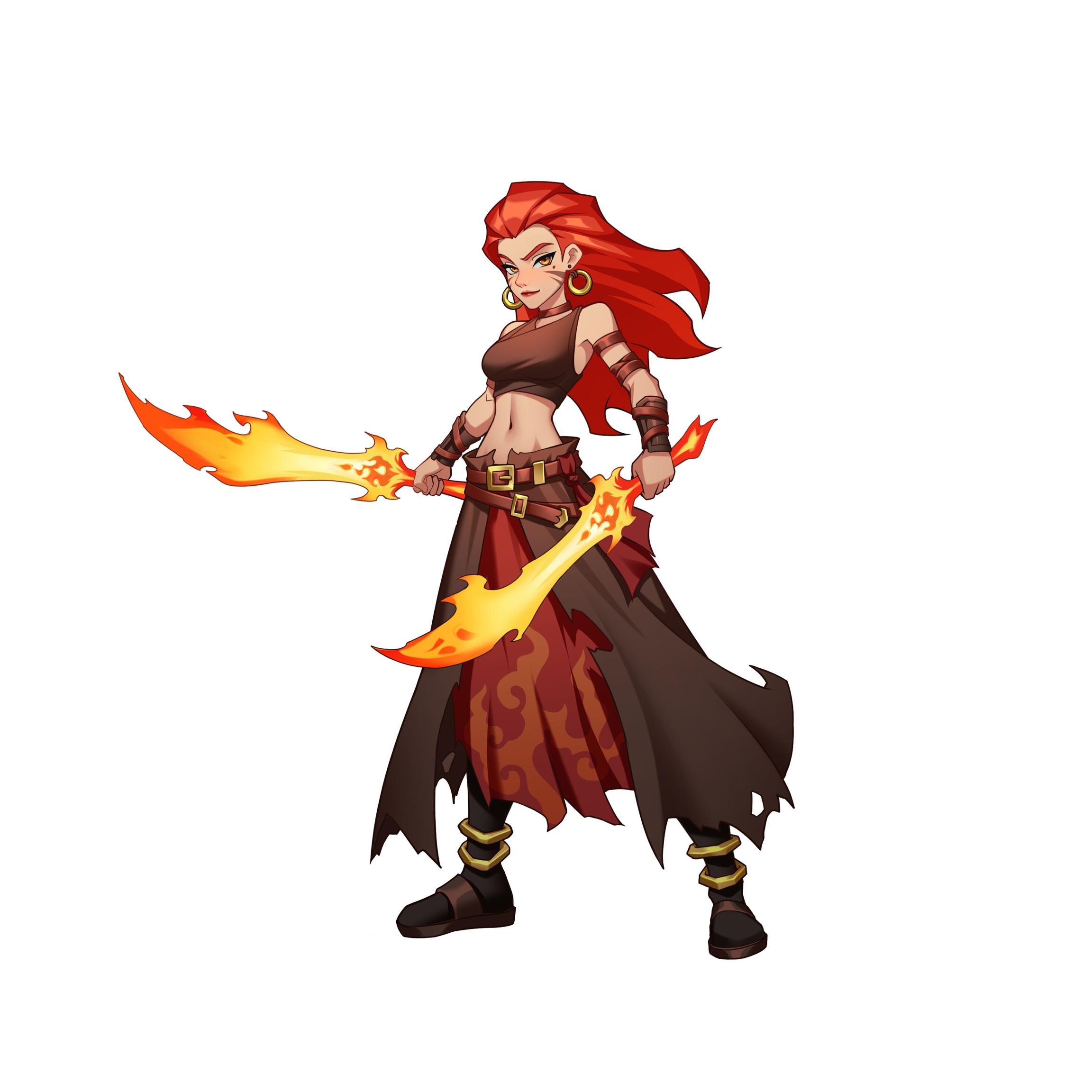Sua vida é repleta de combates e desafios. Em cada batalha, ela demonstra uma inteligência tática extraordinária e uma coragem sem igual. Especialista no uso de espadas gêmeas flamejantes para combates corpo a corpo, ela também comanda habilmente seu grupo de mercenários em complexas formações táticas. Seu estilo de luta é tanto feroz quanto eficiente, com cada ataque sendo letal e preciso.