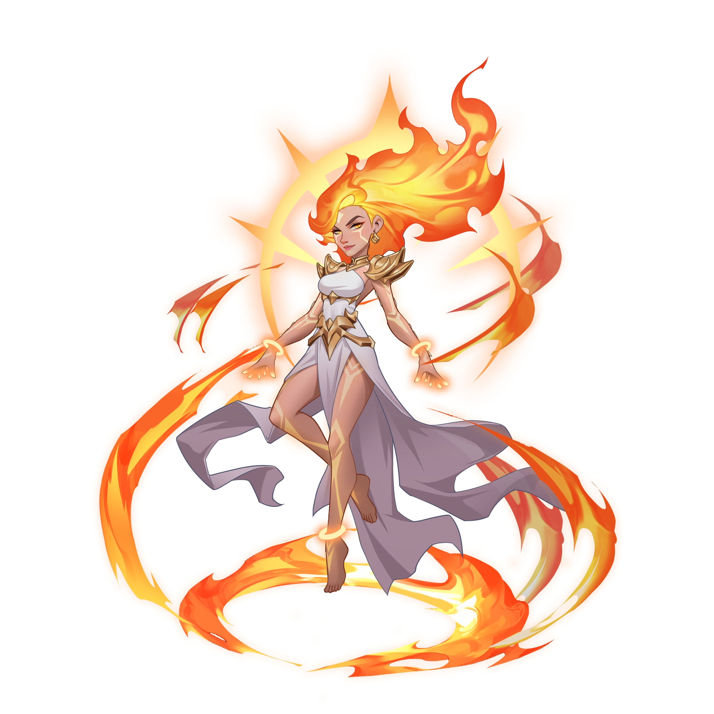 Sacerdotisa do Fogo, sendo uma existência única no Templo do Fogo, possui o poder especial de transformar elementos ferozes de fogo em chamas acolhedoras. Esta jovem mulher é vista como uma figura misteriosa e importante dentro do templo por sua habilidade especial. Sua presença parece acalmar a fúria das chamas, trazendo uma atmosfera de calma e sacralidade.